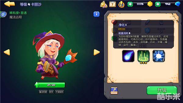 血量不错,输出较低,卡丽莎54的速度在游戏中位居第三,往往可以为我方抢占先手权。她在12级时便可第一回合就使用绝招,优秀的被动技能和2格能量的大招让她可以配合极大部分阵容,且绝招可解除极大部分的负面效果。种种效果让小魔女成为游戏中的第一辅助单位,而且身为绿卡,培养门槛极低,12级就能发挥出全部作用,属于练了绝对不亏的绿卡。