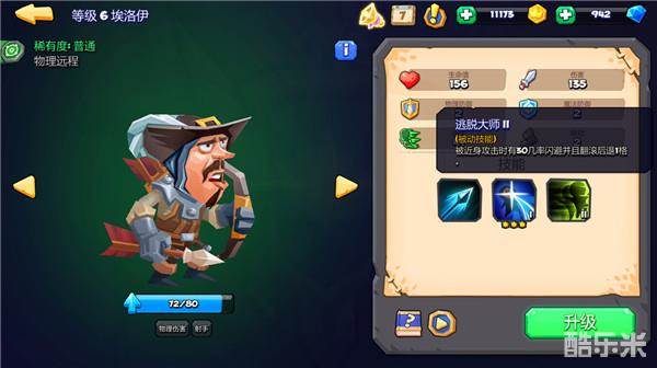 一开始就拥有的绿卡,被动技能逃脱大师有几率闪避攻击并翻滚后腿一格,保命神技,可让很多人使用近战单位时不主动进攻,而选择贴住他。大招弱点射击威力爆炸,升满后可对目标造成极大伤害,个人是推荐神射手拿来当后手,依靠其极高的输出能力配合队友对敌方单张卡牌造成严重伤害,甚至于直接击杀单张卡牌。