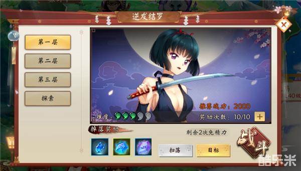 我们选择了逆发结罗这个副本,点开秘境可以看到这个秘境一共有三层,难度会逐层增加。
