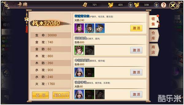 少侠获得的卡牌可以在收集界面激活,提升人物的各项属性,快速提升战斗力,卡牌激活的组合多种多样,少侠们可以根据自己职业的需求选择优先激活的组合。