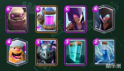 1.卡组进攻核心是地面推进霸主石头人,搭配双女巫作为后排,樵夫提供狂暴buff,一波有效的推进往往会让对手无法抵抗;