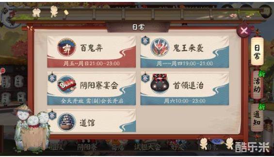 2.阴阳寮活动,主要的阴阳寮活动无非就是每天的寮三十,以及成熟的道馆每天定时开的寮三十了,当然也包括每周五和周日的寮宴以及周六的退治活动。其实大部分都是可以挂机的,寮宴动动手指头就行了不仅有经验还有各种青吉鬼,黑胖圆以及蓝票等,而道馆的话不想打助威两场就可以拿低保了。而积累寮勋章的好处就是你每个星期都可以在功勋商店得到两张蓝票以及黑蛋碎片还有皮肤券等等。