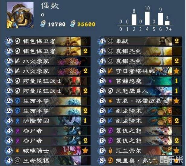 起手必找银色保卫者和阿曼尼,水文学家备选,而必留的就是夺尸者(拖的越久,牌库的效果越少,夺尸者的价值越低)和玻璃骑士、大宝剑,2费一般要2张,一张2费上,另一张3费上,把费用打光,不管打任何卡组,这样的留牌都是最灵活且节奏最好的,无论对手怎么打我们都有办法应对,要解场有,要场面也有。
