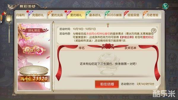 【活动规则】1、角色等级达到213级才可以进行提亲操作