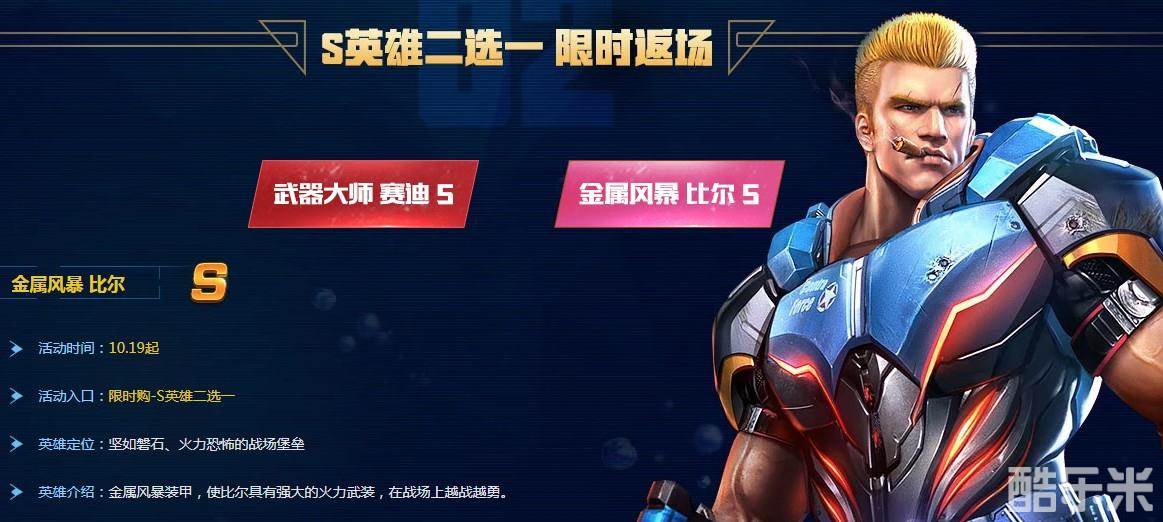 S英雄限时购二选一,其中就是师从兰斯,拥有超乎常人的武器制作能力,是艾丽斯素未谋面、拥有不同命运的亲姐姐的S级英雄-武器大师-赛迪。以及她的师傅S级金属风暴懒死,金属风暴装甲,使比尔具有强大的火力武装,在战场上越战越勇。