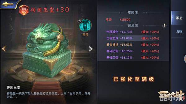 伴随着此次更新,《三十六计》手游迎来130资质新宝物—传国玉玺,相传这是秦始皇统一天下后使用用绝美和氏璧精心打造,后为刘邦所得,传至汉末,是中国历代正统皇帝的凭证。该宝物的主属性可增加攻击多达15600点,当兵力低于一定比例后,还可免疫至少一次技法伤害。可谓是属性突破数值极限,功能性亦是所向披靡。此外新加入的极品战法“破甲”、“追击”更将助力主公征战沙场,决胜千里。