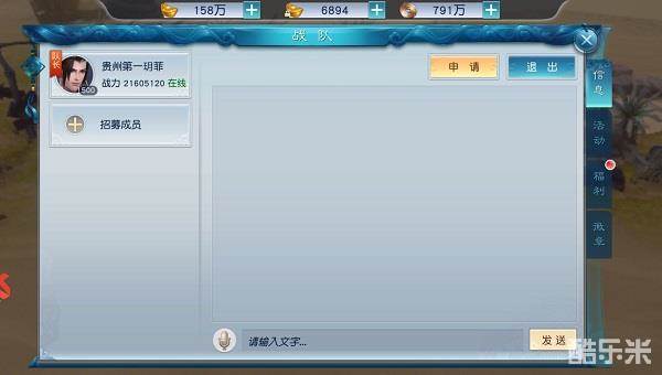 打开【战队】-【信息】界面,可以查看到战队成员信息。队长世界频道招募队员和查看人员申请名单的权利,以便及时做出调整。