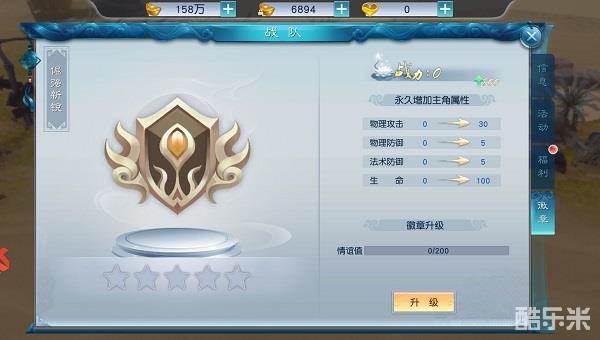 打开【战队】-【徽章】界面。在左边可以查看当前战队徽章以及星级,徽章等级大家可以消耗情谊值共同提升,可以给角色增加巨额属性。