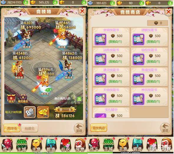 竞技系统分为竞技场及仙道会两个部分。竞技场为日常活动,全天候开放,所有玩家均可参与;仙道会一周开启一次,需要达到一定等级才可排名参加。