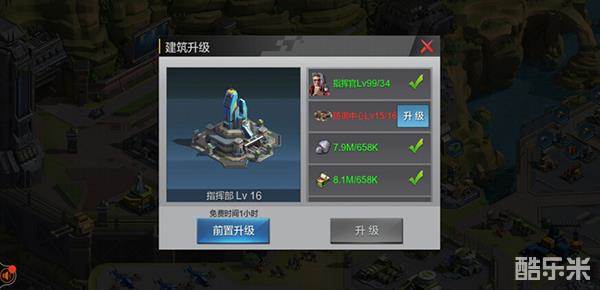 指挥部等级取决于指挥官本身等级。等级是作为影响实力和发展的一个大头,也是打好基础的第一步!指挥官可以通过不停刷任务来达到升级的效果,如果前期指挥官等级升级速度不够的话,也可以通过接支线任务,达到快速升级的效果。