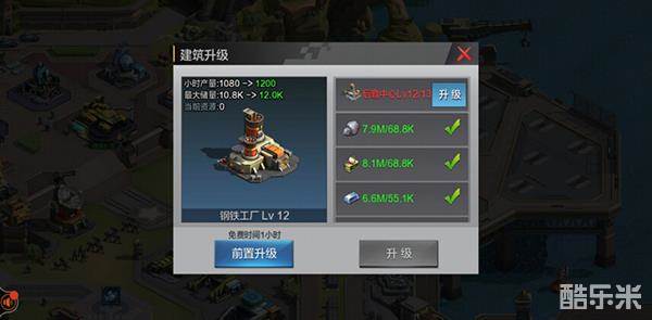 兵团厂的等级主要取决于防御中心,所以想要生产强有力的兵种,则要考虑提升防御中心等级。