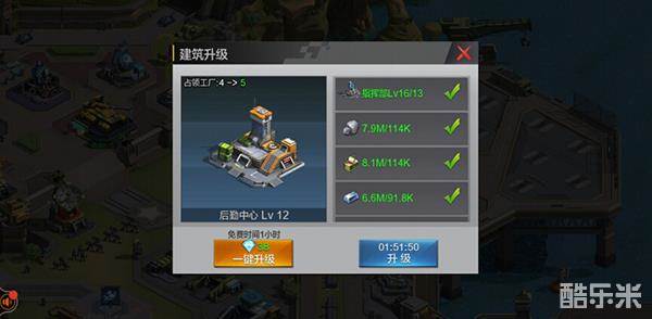 资源建筑等级取决于后勤中心等级,后勤中心等级取决于指挥部等级,所以各位指挥官在做升级资源建筑等级时,要优先提升后勤中心等级。