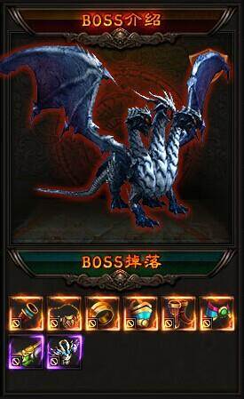这头巨龙有三个龙首,每个龙首都能喷吐烈焰,烧毁一切。看上去很强大,其实不过如此。70以前的BOSS都没有特殊技能,完全靠它的肉体扛住伤害,还有靠他的普攻来攻击,所以硬撑一下就过了。