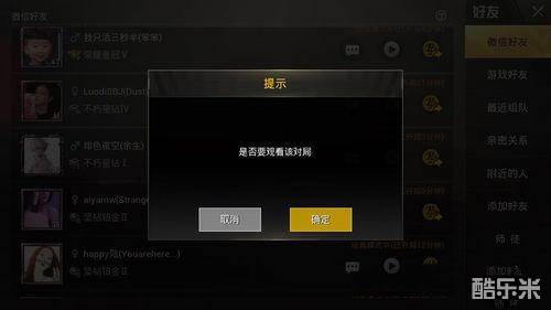 在那些已经进行游戏的好友那边,有一个类似播放一样的按钮,那个按钮就是观战按钮,我们点击这个按钮,会弹出来一个提示,我们点击确认就可以进去了。