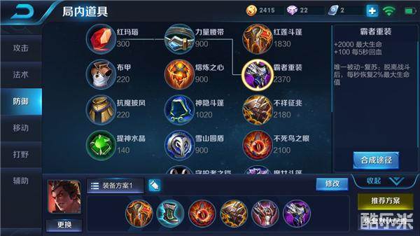 六神装:红莲斗篷、抵抗之靴、不死鸟之眼、不祥征兆、反伤刺甲、霸者重装