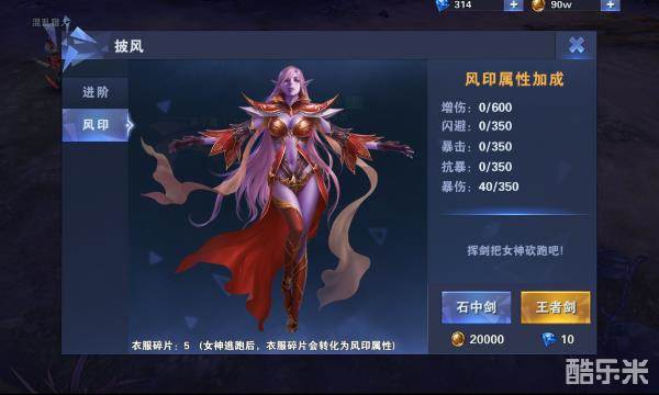 每攻击一次我们召唤出来的女神,她就会掉落一份衣服碎片。每位女神最多只能攻击五次,五次之后她就会败退,之后这些衣服碎片将用于强化披风,转化为风印属性。