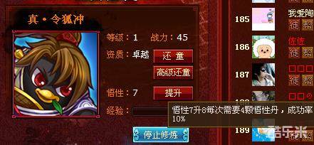 提升悟性需要用悟性丹,每个等级需要的悟性丹各不同。