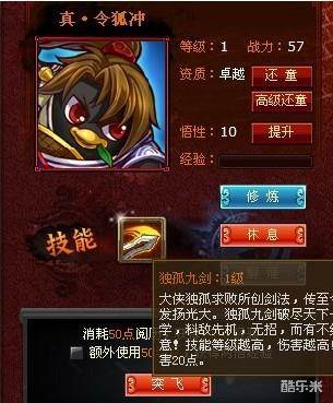 真令狐冲的获得方法:首先想得真令狐冲,只能先去历练林郊城外打凶尸,有30%概率掉落令狐冲。
