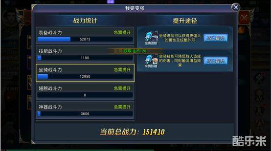 2.点击其中一个战力系统,右侧则会显示相应的变强途径,点击右侧按钮直接打开途径界面。
