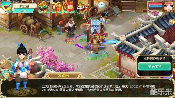 五大门派弟子行走三界,常有宝物托付镖局护送其回门派,有能力的侠客可前往镖局帮忙,玩家可护送不同等级的宝物,完成护送会有不同等级的奖励哦。但是要注意的是,运送中会可能会遇到劫匪,也可能被其他玩家抢劫镖车哦!当然,你也可以去打劫别的玩家的镖车。鹿死谁手还没有知道呢!