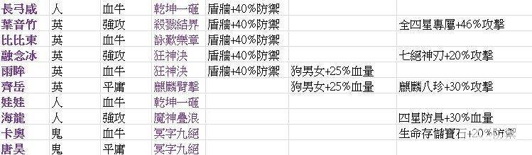 在唐门世界中感觉V0~V4的玩家,在不考虑五星专属的情况下(平民实在不好弄),盾墙比较实用,但是盾墙有个比较明显的缺点,属性失衡,英豪太多,因为有雨眸,所以基本都带上齐岳,盾墙加齐岳,就剩下两个位置,个人偏向再挑一人一鬼,优先考虑海龙和卡奥.所以首发五星有盾墙的同学,可以考虑一下走这个方向,如果首发齐岳,海龙,娃娃,卡奥,唐昊,可以带或不带,看自己偏好的定位,至于首发的以上都不是,那么可以先放包里做肥料了。