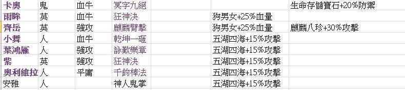 这个组合比较均衡,五星英雄天赋技能都是很不错,唯一一个四星的技能也是单体四星最好的.如首发五星小舞,叶鸿雁,紫,奥利维拉,定位V0~V2,可以考虑这个组合.再来看看主流的三人三英二鬼阵。