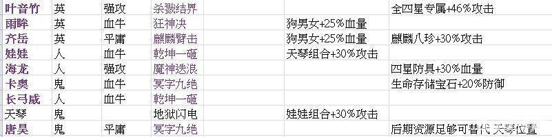 这里就说说天琴,天琴是一个很值得用,而且能用很久的四星鬼雄,缺点也很明显,天赋技能是个垃圾,但四围相当漂亮,搭配娃娃提升整体输出.但石头只能上3个,天赋技能很鸡肋的情况下,后期资源充足的情况下,还是考虑替换唐昊.
