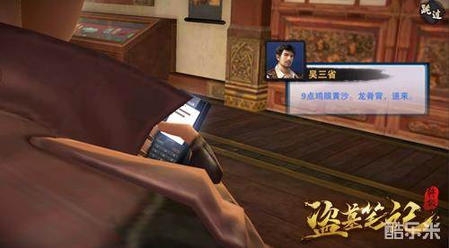 在书中,吴三省一条短信引出了吴邪的第一次下斗,就是那条短信“今晚九点,鸡眼黄沙,龙脊背,速来。”当时的吴邪纯粹是一个少年心性的古董店小老板,并不知道家族那些秘辛。而这里,也是游戏中你与吴邪第一次见面的地方。