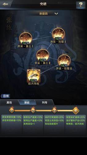 以上就是江东名士张纮的突破情况介绍了。突破后的张纮能在种田挖矿等资源收集方面发挥重要的作用,各位主公千万不要错过哦!更多精彩内容,尽在《三国群英传-霸王之业》!