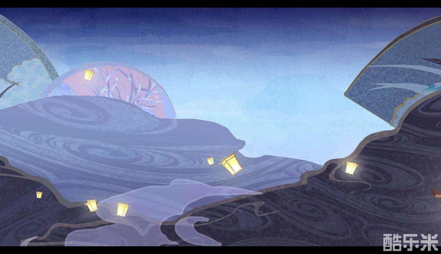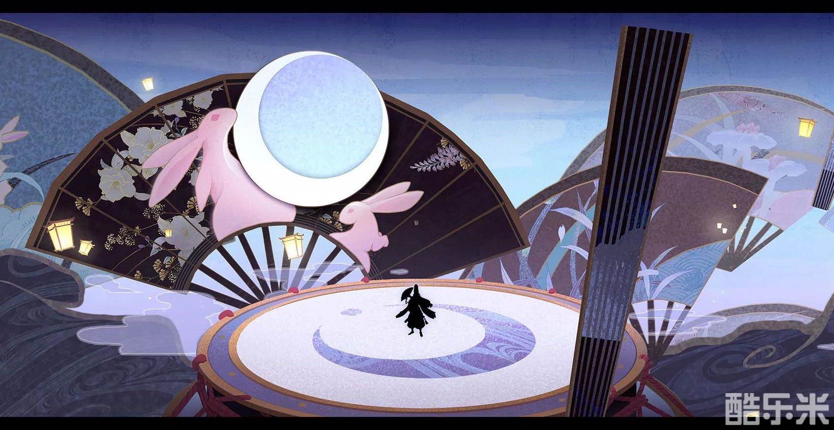 拥兔入梦,细观梦隙中的一动一静。或展或合的折扇,芳草与繁花栩栩如生,层叠于扇面,盏盏天灯点缀着天际,每一盏都深深寄寓着人们的祈愿。