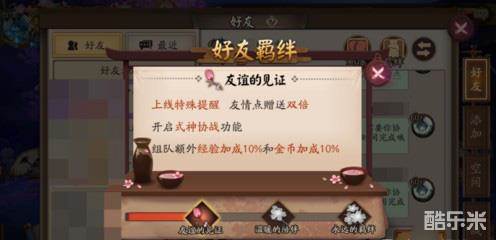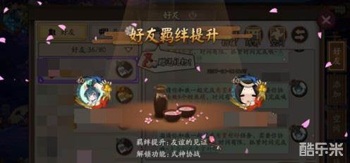 羁绊值可以通过组队,点赞,送心,邀请百鬼,赠送福袋等方式增加,如果在同一个阴阳寮,还可以赠送碎片。至少需要两天才能和好友形成第一个羁绊,组队大概600-700体力左右,还是比较快的。