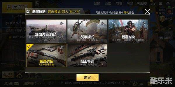 想要进入手枪模式就直接选择娱乐模式的极速战场,进去后看右下角,如果写的不是手枪模式那么就退了重进,直到进入该模式。