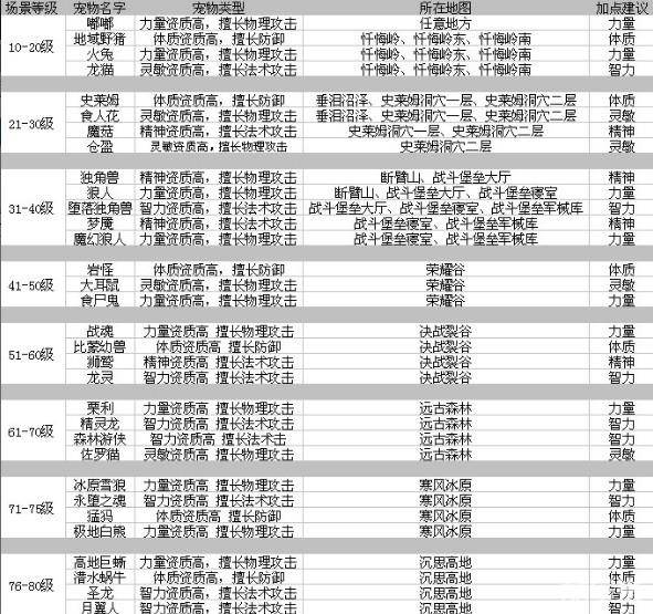 相信通过上表,玩家了解了宠物的分布和战斗类型。小编在此祝愿每个玩家都可以找到自己心仪的宠物。