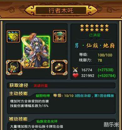 种族:仙族 职业:地府 等级上限:100 最高所需统御力:78 最高星级:12 攻击上限:16774 生命上限:321992 初始卡牌:行者木吒(7星) |