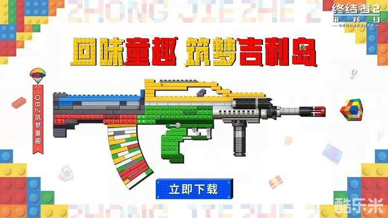首款带有特殊淘汰特性的枪械皮肤正式到来。与之前主打酷炫风的皮肤不同,全新皮肤QBZ童趣主打可爱风,枪神以五颜六色的积木搭建而成,仿佛一把人畜无伤的玩具枪,但是当它开始进攻时,战斗力绝对会让敌人大吃一惊。童趣皮肤的枪口常驻有数个表情会随机播放,当童趣升级到筑梦童趣后,不仅枪身色彩更斑斓,还会激活特殊淘汰特性,敌人被击杀后将化为积木盒子,一眼就能看出这是你的战绩。