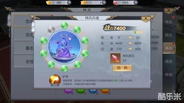 3)兵魂激活之后,消耗材料培养,培养增加属性值。