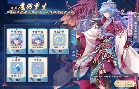 10月24日5:00-11月7日4:59“魔羽重生”活动期间,各位小仙女们通过活动副本可获得白羽、黑羽来兑换【予诺·支离破碎】的残魂以及入幻材料等道具。在副本中面对被心魔控制的予诺,推荐使用水、土、火系以及具有蓄力计能的伙伴上阵对敌。