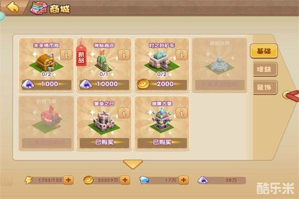 最后我们来说说功能类建筑,这个建筑的玩法就比较多样了,威廉古堡、金矿,神秘商店等等,挑战威廉古堡可以获得丰富的宝石奖励,而金矿则可以获得大量的金币。随着玩家堡垒和爵位的提升,功能类的建筑会越来越多,玩法也越来越有趣哦。
