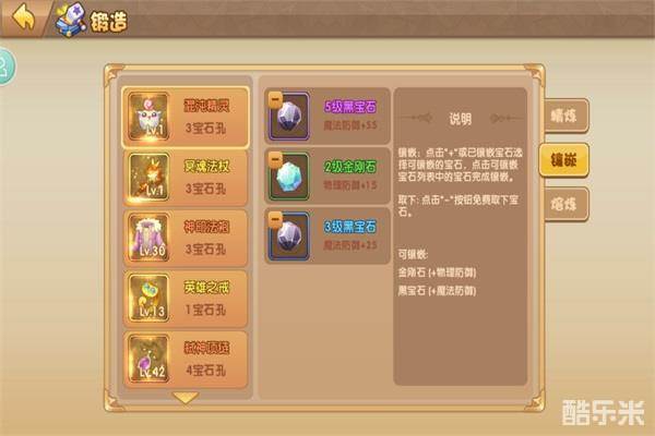 例:10-19级装备可镶嵌一颗宝石,20-29装备可镶嵌两颗宝石,30-39装备可镶嵌三颗宝石