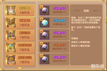 但一件装备上最多可以镶嵌7颗宝石,80级以上的装备也只能最多镶嵌7颗宝石(翅膀不可镶嵌宝石)