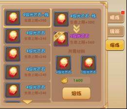 熔炼每次需要1颗同等级宝石3颗低一等级宝石,第一次熔炼后该宝石属性会小幅度提升,第二次熔炼时该宝石会直接升等级。换算过来,熔炼比合成会多出两颗低一级宝石的消耗,好处是材料缺少,数量不足直接让宝石升升级时可以通过熔炼先提升宝石附带属性。