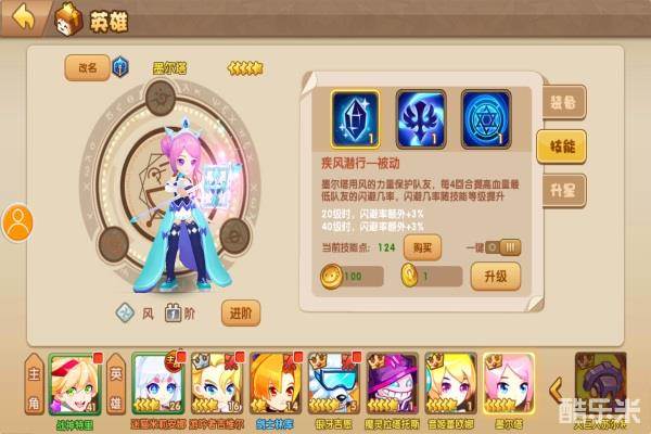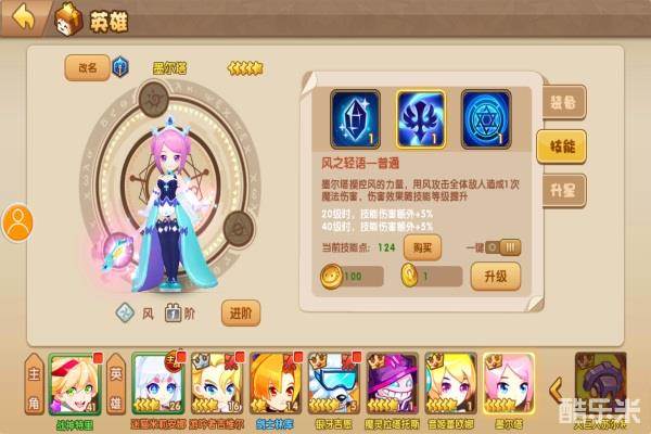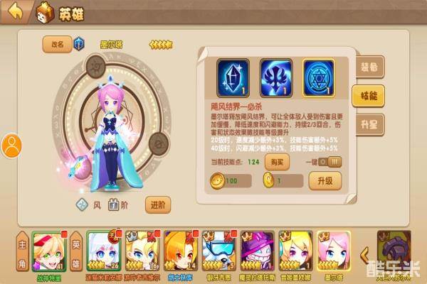 被动技能--风之轻语,群攻技能,能用风的力量攻击全体敌人,魔法伤害随英雄的等级增加。