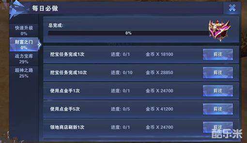 在轩辕王座里,除了完成主线任务可以获得一定金币之外,勇士们还可以打开”每日必做“,通过财富之门玩法完成日常任务来获取金币。