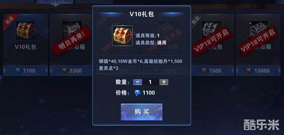 另一个比较简便的方法是通过女王铺子购买VIP礼包来获取金币,每个VIP等级都有对应的礼包,打开后即可获得金币。
