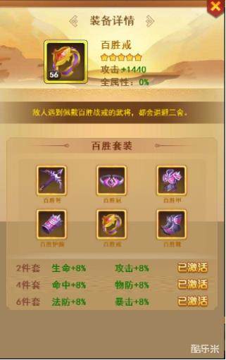 “我的帝国”装备系统也是选择繁多,绿装和蓝装不做讨论,就说5星黄装就分为君子套、黄金套、天机套、某天套以及百胜套装,那么根据小”编”多次打探试用,最适合的还是百胜套,所以前期都可以对百胜套进行进阶强化(土豪除外)。