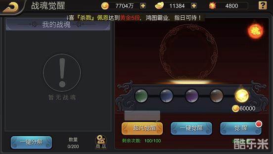 大家知道,战魂系统里面每天有一个免费的战魂可以领取,我们可以运用好这个操作模式,前面四个基本上都不会出橙色战魂,而最后一个金色的圈圈会随机出橙色战魂,因此,我们只要每天把战魂点到金色的位置(60000),第二天就可以免费开,有相当大的几率获取到橙色战魂,可以帮助大家省下一大笔金币哦!各位小伙伴们是不是觉得很有用啊!