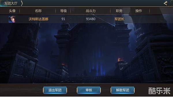 在军团大厅页面中,玩家可以查看到军团中所有玩家的信息,军团会长还可以在该页面上对其他军团成员进行权限操作,以及解散军团、审核加入军团的玩家等操作;