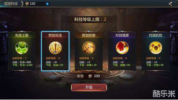 玩家可以在军团科技页面上,为自己升级军团科技效果;