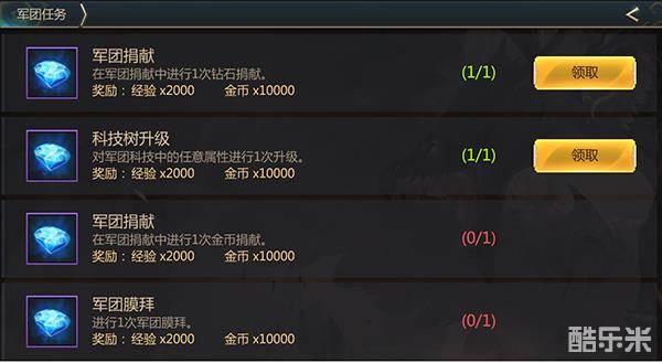 玩家每日可以完成军团任务来获得丰厚奖励;