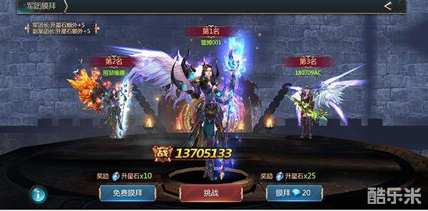 进入军团膜拜页面后,玩家可以膜拜军团中战斗力最高的3名玩家,每个玩家可以膜拜一次;